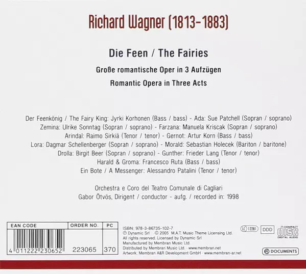 | Wykonawca | Richard Wagner | Orchestra del Teatro Lirico di Cagliari | Raimo Sirkiä | Coro del Teatro Lirico di Cagliari | Artur Korn | Sue Patchell | Birgit Beer | Gabor Ötvös |