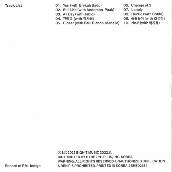 | 8 | Rap Monster, Colde: Hectic | 3:46 min | |