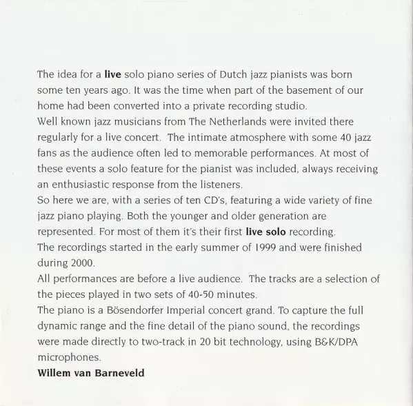 | Tytuł | Solo Piano 'Jazz At The Pinehill' |