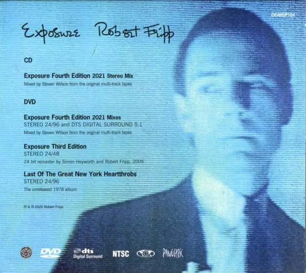 Robert Fripp: Exposure Wersja na CD/DVD w zremasterowane wydanie. Ta konkretna edycja została wydana w USA i Wielka Brytania w wydawnictwie Discipline Global Mobile we współpracy z Panegyric dnia 27. maja 2022. Album sięga do gatunku Rock, Muzyka elektroniczna, Alternative rock, Experimental, Ambient i Dance-pop. Steven Wilson Mix CD & DVD Edition.