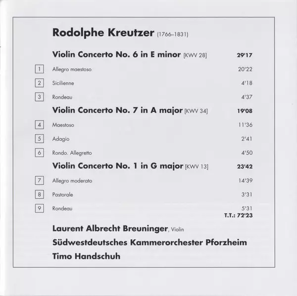 Wykonawca | Südwestdeutsches Kammerorchester | Rodolphe Kreutzer | Albrecht Breuninger | Timo Handschuh |