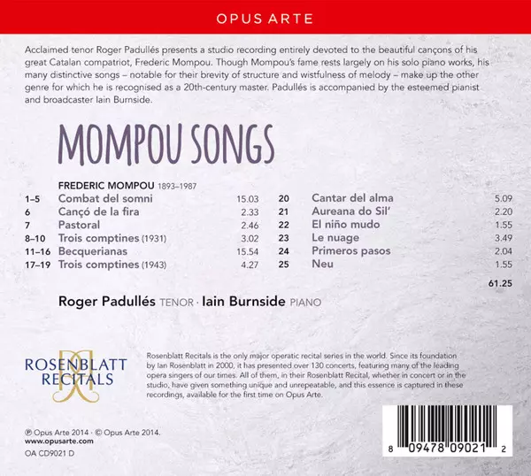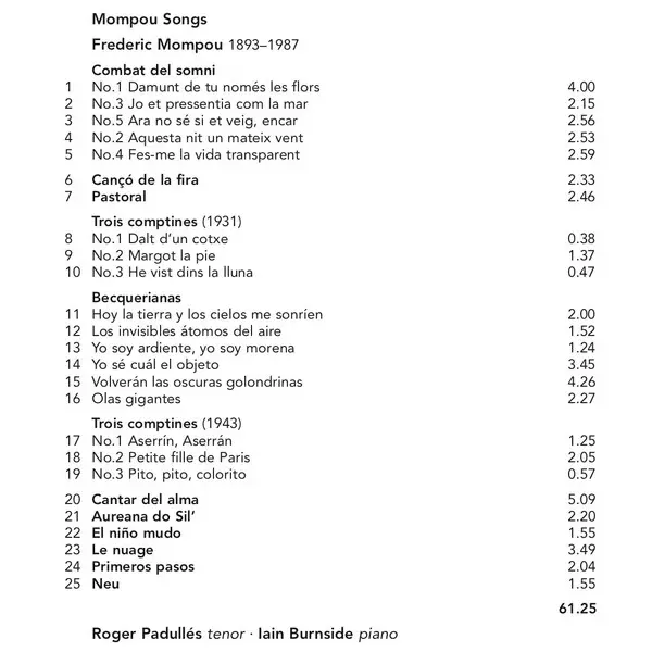 Wykonawca | Iain Burnside | Frederic Mompou | Roger Padullés |