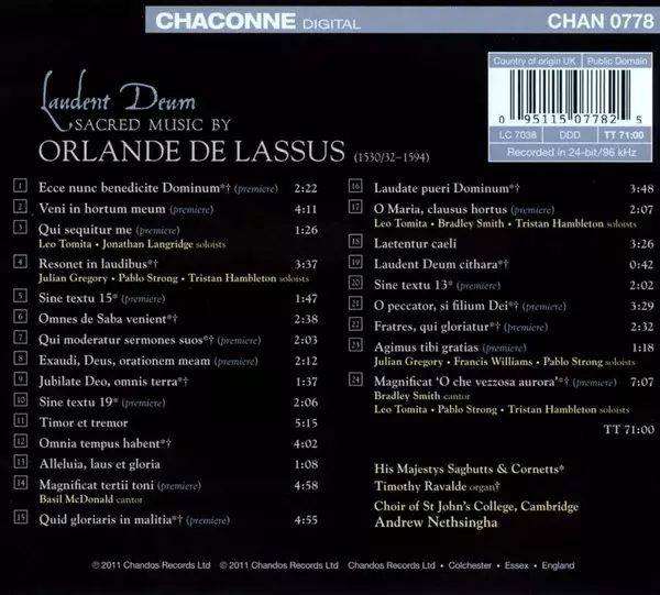 Wykonawca | St. John's College Choir | Roland de Lassus | Andrew Nethsingha | His Majestys Sagbutts And Cornetts |