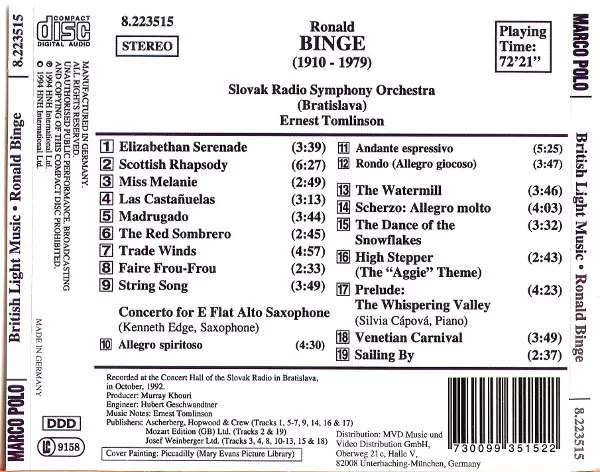 | Wykonawca | Slovak Radio Symphony Orchestra | Ernest Tomlinson | Ronald Binge |