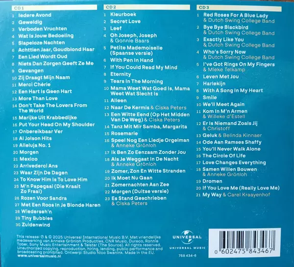 Ronnie Tober: Ronnie Tober 80 - Mijn Kleurboek Wersja na 3CD w standardowe wydanie. Ta konkretna edycja została wydana w Holandia w wydawnictwie Universal Music dnia 11. kwietnia 2025. Album można sklasyfikować jako gatunek Pop.