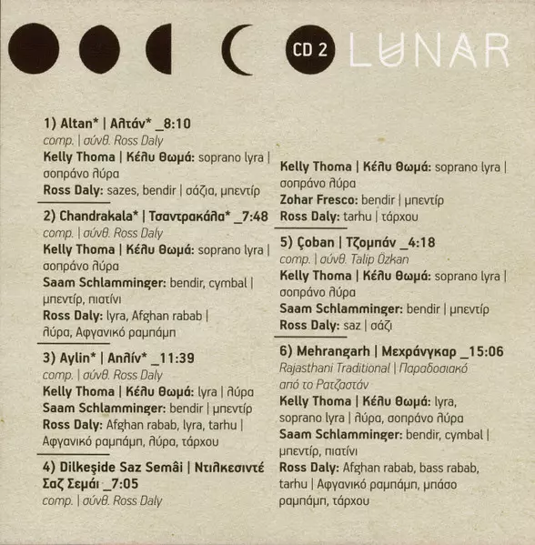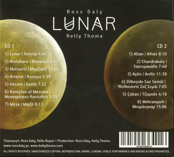 Ross Daly: Lunar Wersja na 2CD w standardowe wydanie. Ta konkretna edycja została wydana w Grecja w wydawnictwie Not On Label (Ross Daly Self-released) dnia 25. stycznia 2018. Album można sklasyfikować jako gatunek Folk, World, & Country.