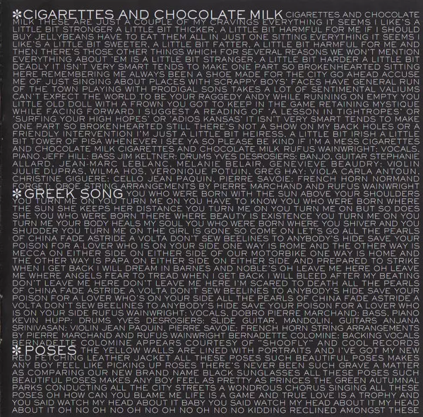 Arranged By [String Arrangements By] Pierre Marchand, Rufus Wainwright | Backing Vocals Bernadette Colomine | Bass, Piano Pierre Marchand | Drums Kevin Hupp | French Horn Jean Paquin, Pierre Savoie | Slide Guitar, Mandolin, Guitar Yves Desrosiers | Violin Anjana Srinivasan | Vocals, Dobro Rufus Wainwright