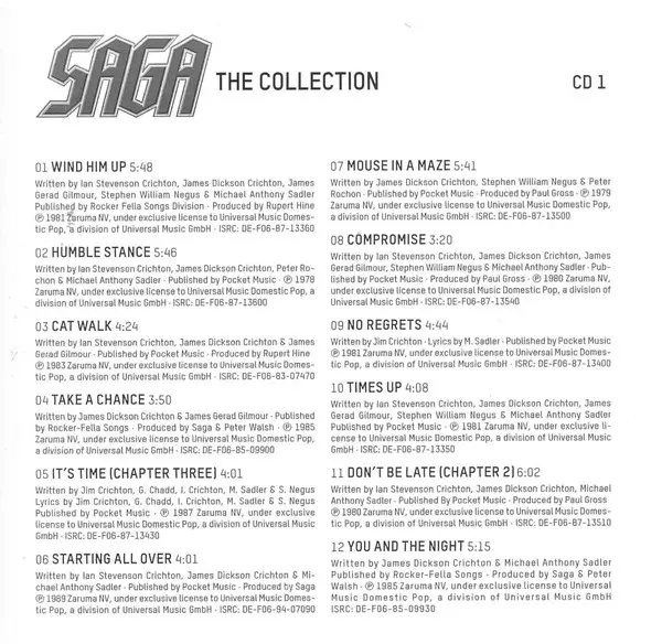 Saga: The Collection Wersja na 3CD w standardowe wydanie. Ta konkretna edycja została wydana w Europa w wydawnictwie Polydor dnia 9. kwietnia 2013. Album sięga do gatunku Rock, Rock progresywny, Classic Rock i AOR.