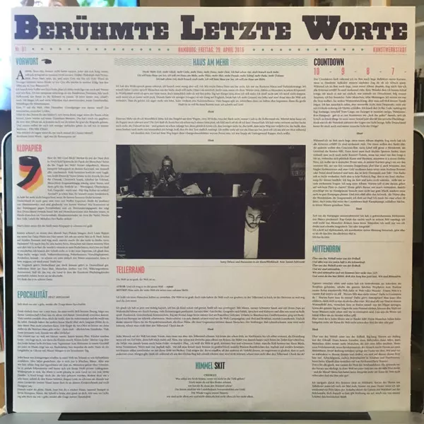Samy Deluxe: Berühmte Letzte Worte Wersja na winylu 2LP w standardowe wydanie. Ta konkretna edycja została wydana w Niemcy, Austria i Szwajcaria w wydawnictwie Vertigo dnia 29. kwietnia 2016. Album sięga do gatunku Hip Hop, Conscious Hip Hop i Boom Bap.