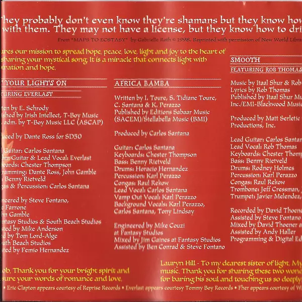 | Bass Benny Rietveld | Engineer Steve Farrone, Steve Fontano | Engineer [Assistant] Michael Anderson (3) | Keyboards Chester Thompson (2) | Lead Guitar, Congas, Percussion Carlos Santana | Lead Vocals [Featuring], Rhythm Guitar [Featuring] Everlast | Mixed By Tom Lord-Alge | Mixed By [Assistant] Femio Hernandez | Producer, Programmed By Dante Ross | Programmed By, Engineer John Gamble | Written-By Erik Schrody | |||