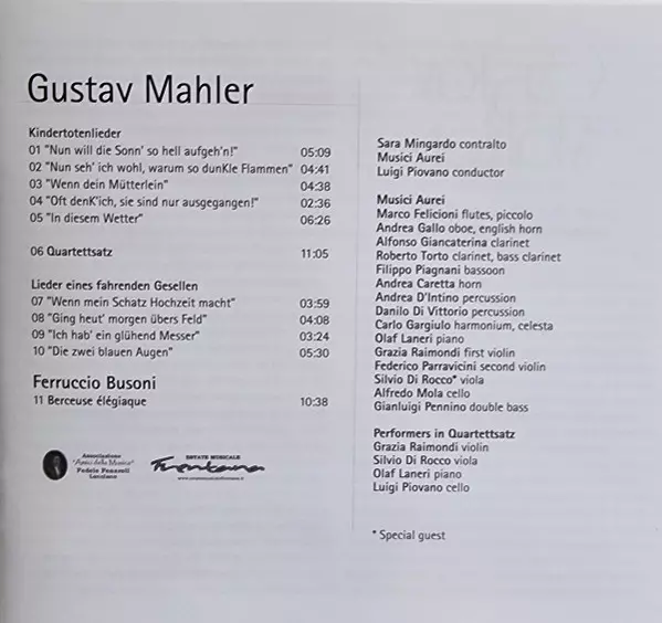 | Wykonawca | Gustav Mahler | Sara Mingardo |