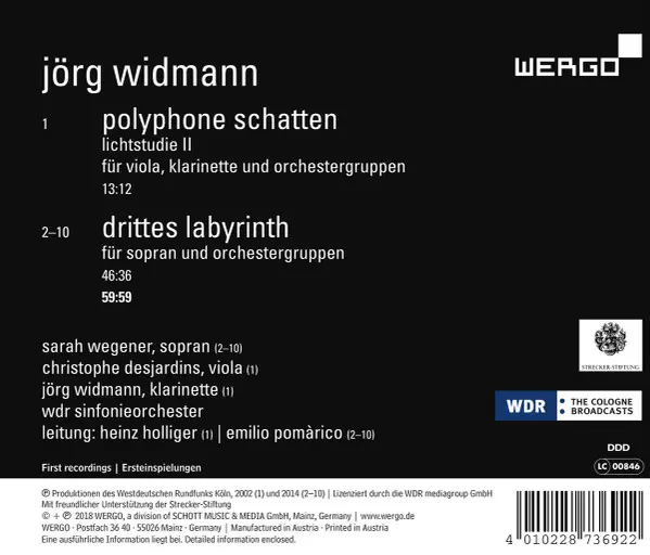 | Wykonawca | WDR Sinfonieorchester Köln | Heinz Holliger | Emilio Pomárico | Jörg Widmann | Sarah Wegener | Christophe Desjardins |