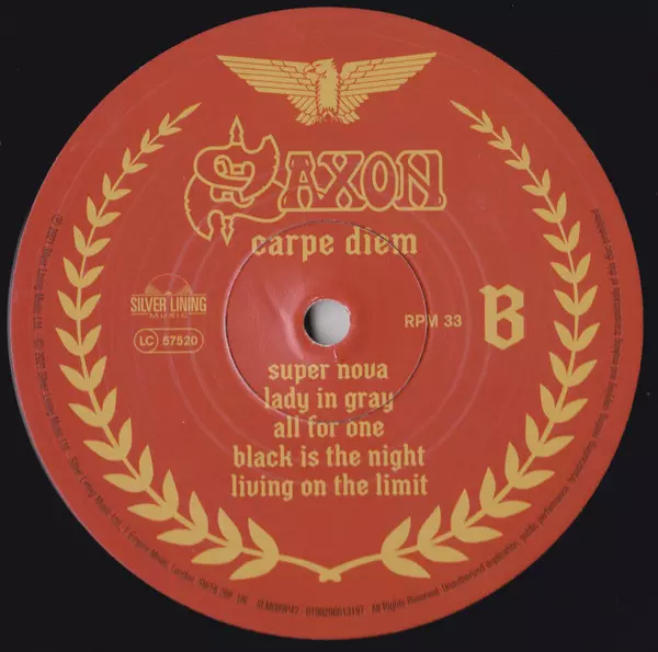 Saxon: Carpe Diem Wersja na winylu LP w standardowe wydanie. Ta konkretna edycja została wydana w Na całym świecie w wydawnictwie Silver Lining Music dnia 4. lutego 2022.