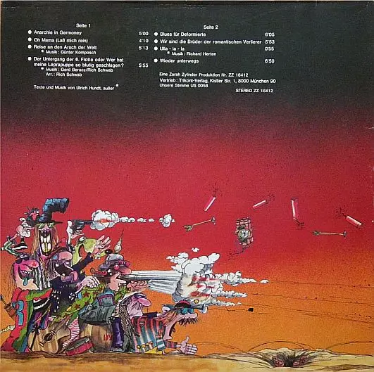 Schroeder Roadshow: Anarchie In Germoney Wersja na winylu LP w standardowe wydanie. Ta konkretna edycja została wydana w Niemcy w wydawnictwie Zarah Zylinder Records we współpracy z Trikont roku 1979. Album sięga do gatunku Rock, Folk Rock, Krautrock i Classic Rock.