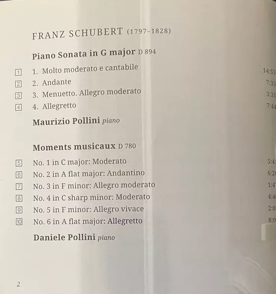 | Wykonawca | Franz Schubert | Maurizio Pollini | Daniele Pollini |