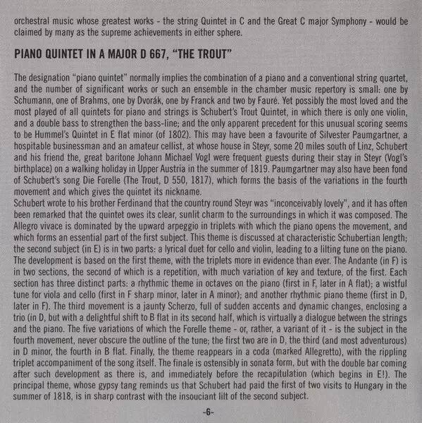 | Piano Quintet In A Major, D 667 "Trout" (D667) | ||