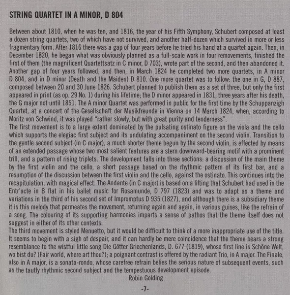 | String Quartet No. 13 In A Minor, D 804 "Rosamunde" |