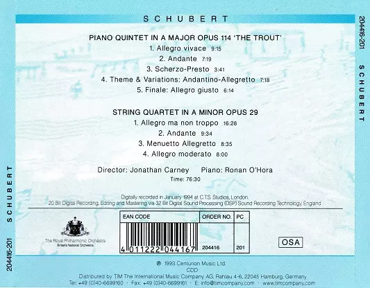 | Tytuł | Piano Quintet In A Major Opus 114, 'The Trout' / String Quartet In A Minor Opus 29 |