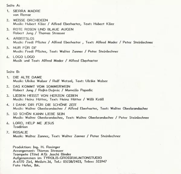 | Więcej informacji | Tyrolis Gold Cassette — includes extra track 'Weiss Orchideen' |