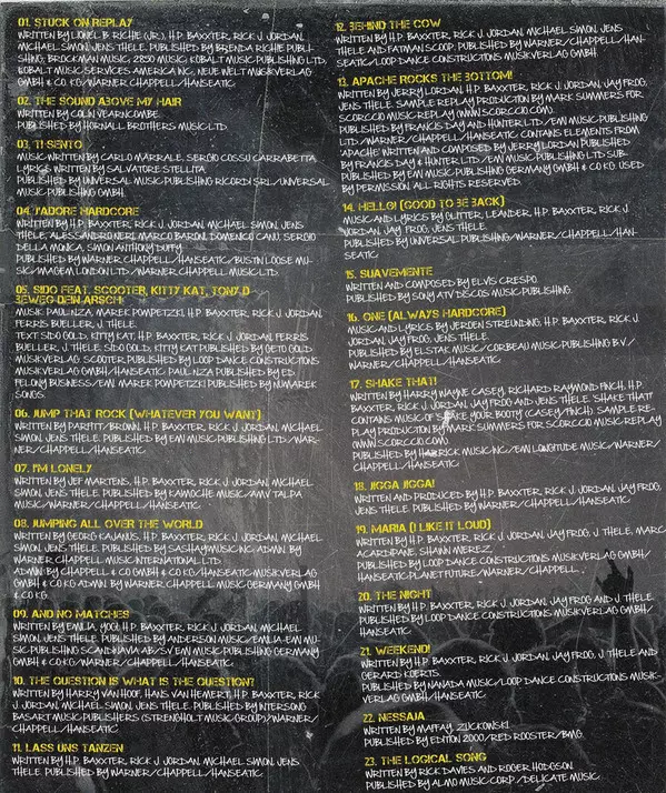 Seznam skladeb: 01 Intro 02 J´Adore Hardcore 03 Posse (I Need You On The Floor) 04 The Sound Above My Hair 05 Stuck On Replay 06 Jumping All Over The World 07 The Question Is What Is The Question? 08 Second Skin 09 Clic Clac I Scarborough Reload 10 Fire 11 Fuck The Millenium I Call Me Manana 12 Weekend! 13 Bit A Bad Boy 14 One (All Ways Hardcore...