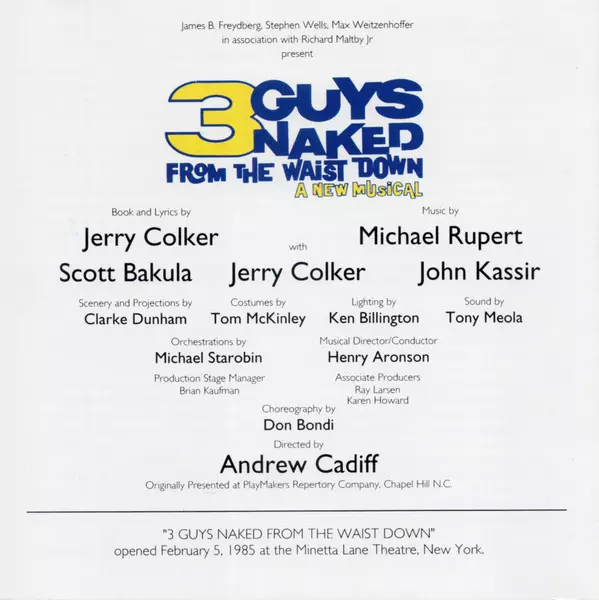 | Tytuł | 3 Guys Naked From The Waist Down - A New Musical -- Original Cast Recording |