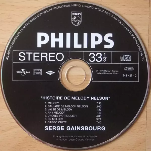 Serge Gainsbourg: Histoire De Melody Nelson Wersja na CD w zremasterowane wydanie. Ta konkretna edycja została wydana w Francja w wydawnictwie Philips we współpracy z Mercury dnia 6. listopada 2001.