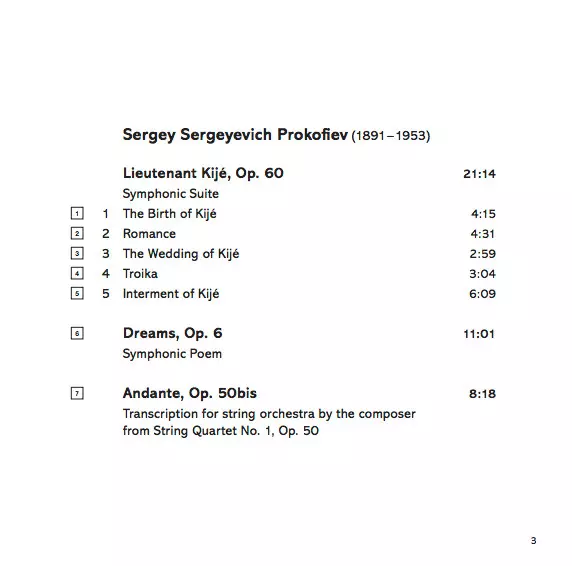 Tytuł | Lieutenant Kijé / Suite From The Stone Flower / Autumnal / Andante (Op. 50BIS) / Dreams |