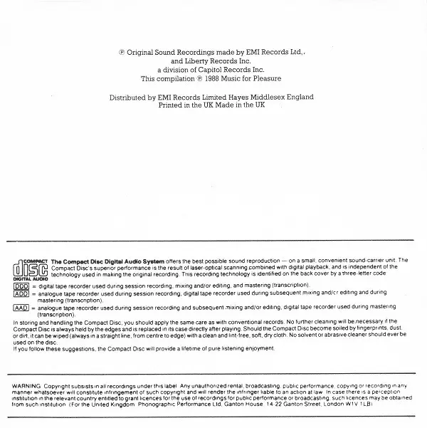| Więcej informacji | Music For Pleasure CD compilation 2017 (UK & Europe) |