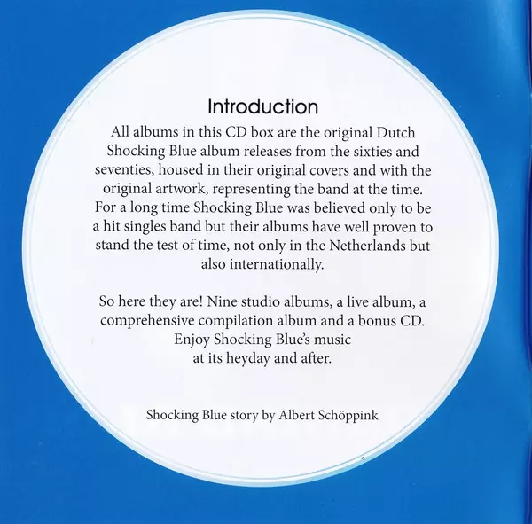 Celá kariéra Shocking Blue v jedné kolekci Kapela Shocking Blue byla založena v Haagu před 50 lety a o sedm let později se rozpadla, ale několikrát se reformovala. U příležitosti svého výročí představuje toto nizozemské rockové kombo v roce 2017 obsáhlý "Blue Box" s celkem 13 CD. Jedná se o kolekci všech původních alb Shocking Blue z 60. a 70. ...