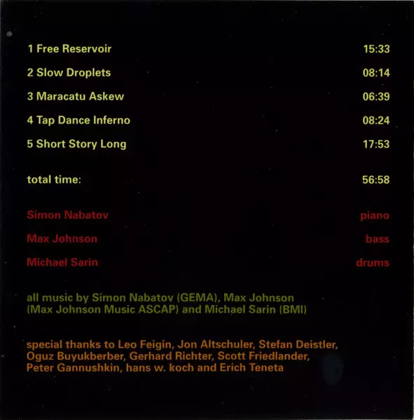 | Wykonawca | Simon Nabatov | Michael Sarin | Max Johnson |