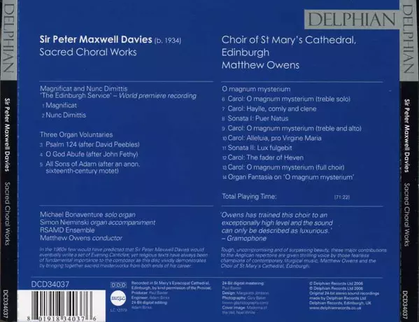 | Wykonawca | Peter Maxwell Davies | Matthew Owens | Choir Of St. Mary's Cathedral, Edinburgh |