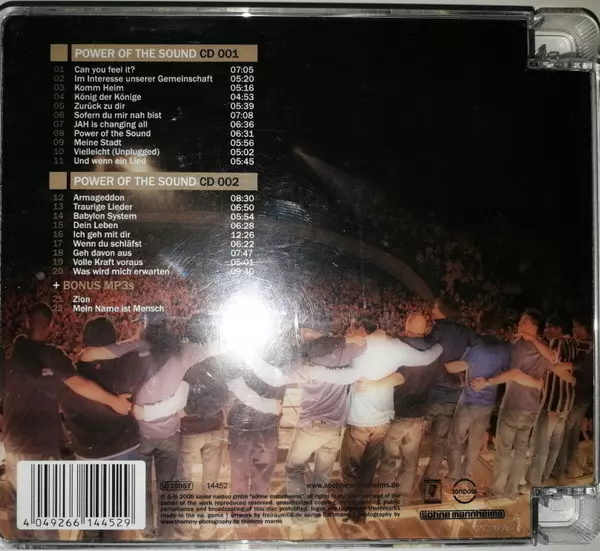 Söhne Mannheims: Power Of The Sound (Livemitschnitt Aus Der Can You Feel It? Tour) Wersja na 2CD w standardowe wydanie. Ta konkretna edycja została wydana w Niemcy w wydawnictwie Tonpool we współpracy z Söhne Mannheims dnia 25. lipca 2005. Album sięga do gatunku Pop, Muzyka elektroniczna, Hip Hop, Ballada, Dub, Pop-Rap, RnB/Swing i Trip Hop.