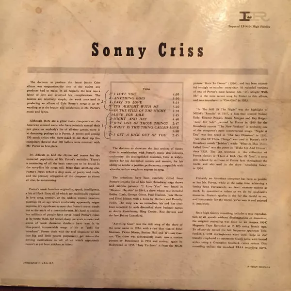 | Tytuł | Sonny Criss Plays Cole Porter |