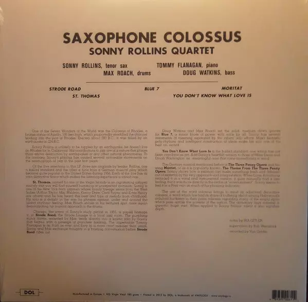 Dzięki saksofonowemu kolosowi, Sonny Rollins ostatecznie zyskał wielkie uznanie jako centralna postać w świecie jazzu. Bis zu dieser Veröffentlichung hatte die Musikkritik Rollins nicht ernst genommen, während seine Kollegen bereits wussten, dass er zu den einflussreichen neuen Kräften der Jazz-Szene gehört. Saxophone Colossus aus dem Jahr 1956 ...