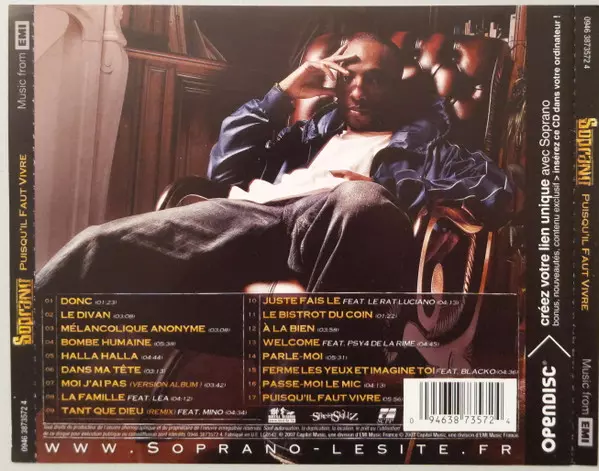 Soprano, whose real name is Saïd M'Roumbaba, is a French rapper and singer of Comorian descent. He first gained prominence as a member of the rap group Psy 4 de la Rime before embarking on a successful solo career. Soprano's music often incorporates elements of hip hop, pop, and el...