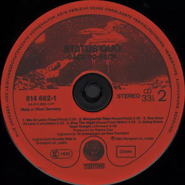 | Więcej informacji | Red Vertigo Spaceship Labels Vinyl |