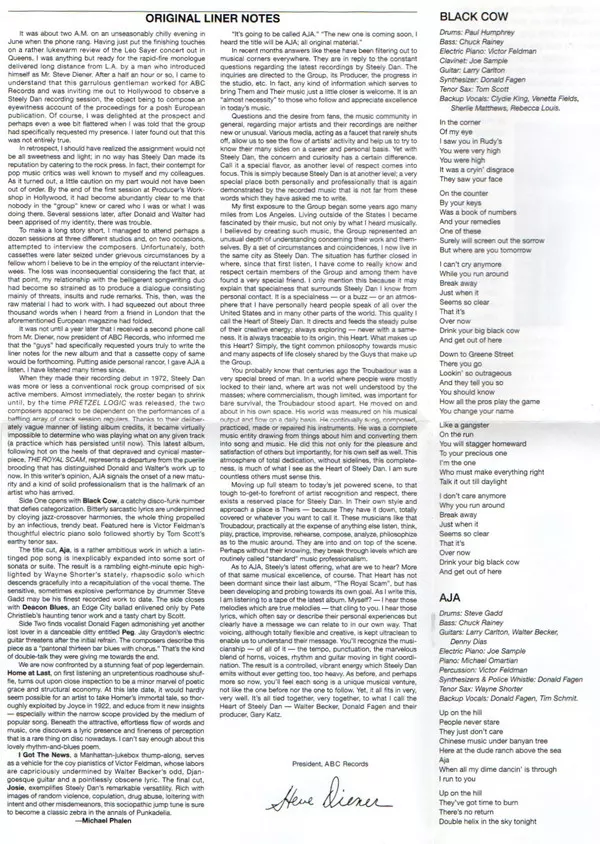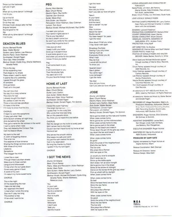 Mózgi stojące za projektem Steely Dan, Walter Becker i Donald Fagen, byli znani z tego, że straszyli swoich muzyków studyjnych bezlitosną krytyką. Gitarzysta Dean Parks opisał ich styl jako "krok poza perfekcję". Aranżacje były dopracowywane do absolutnej perfekcji - tylko po to, by na końcu zostać zniszczone i ponownie nagrane, aby nie stracić ...