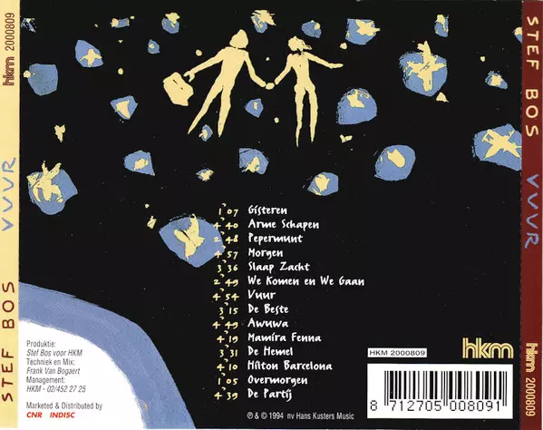 Stef Bos: Vuur Wersja na CD w standardowe wydanie. Ta konkretna edycja została wydana w Belgia w wydawnictwie HKM dnia 6. kwietnia 2012. Album sięga do gatunku Rock, Pop, Ballada i Folk Rock.
