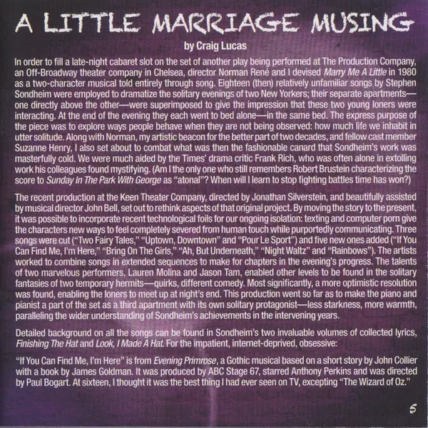 | 12 | Lauren Molina: Marry Me A Little | 3:27 min | |