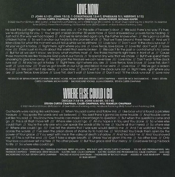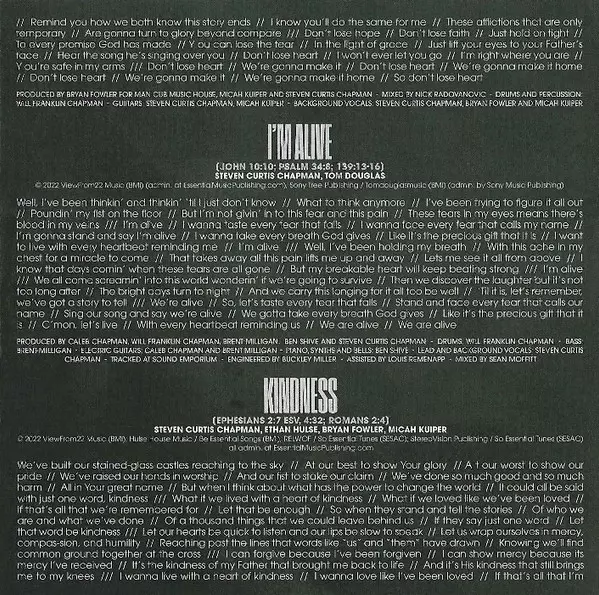 Backing Vocals Micah Kuiper, Steven Curtis Chapman | Drums Will Chapman (2) | Mixed By Nick Radovanovic | Producer Bryan Fowler, Micah Kuiper, Steven Curtis Chapman | Written-By Bryan Fowler, Ethan Hulse, Micah Kuiper, Steven Curtis Chapman