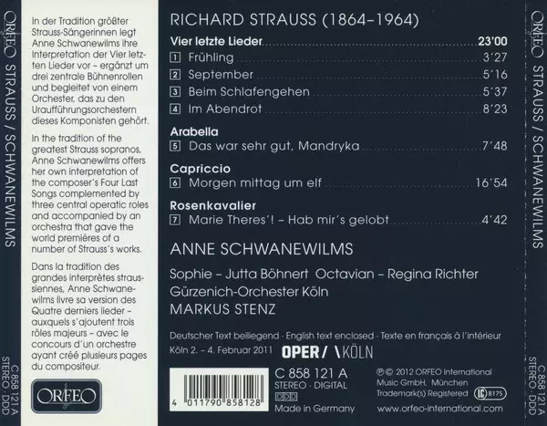 | Wykonawca | Richard Strauss | Gürzenich-Orchester Kölner Philharmoniker | Markus Stenz | Anne Schwanewilms |