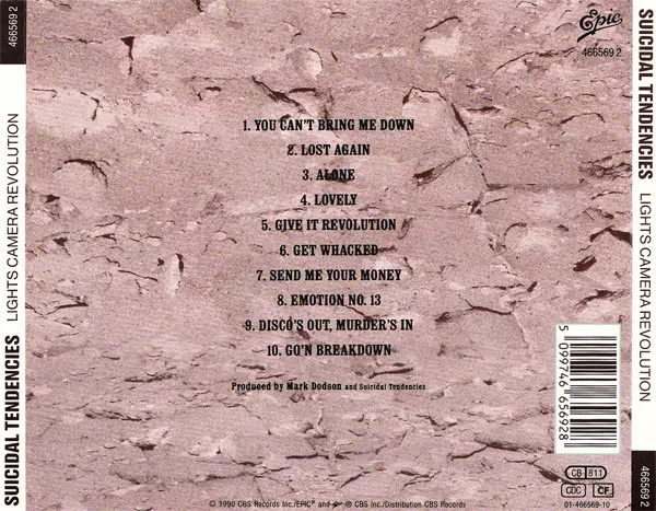 Czwarty studyjny album zespołu Lights Camera Revolution, wydany w 1990 roku na Suicidal Tendencies, odszedł od wcześniejszego thrashmetalowego brzmienia zespołu. Album zawierał bardziej groove metalowe brzmienie i był pierwszym albumem zespołu, na którym pojawił się basista Robert Trujillo, który później dołączył do Metalliki. Album odniósł sukc...