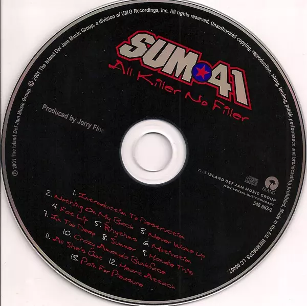 Sum 41 's All Killer No Filler to punkrockowy album wydany w 2001 roku. Album odniósł sukces komercyjny, osiągając numer jeden w Kanadzie i numer siedem na liście Billboard 200. Single z albumu "Fat Lip" i "In Too Deep" również odniosły sukces, docierając do pierwszej dziesiątki na liście Billboard Modern Rock Tracks. Album uzyskał platynowy cer...