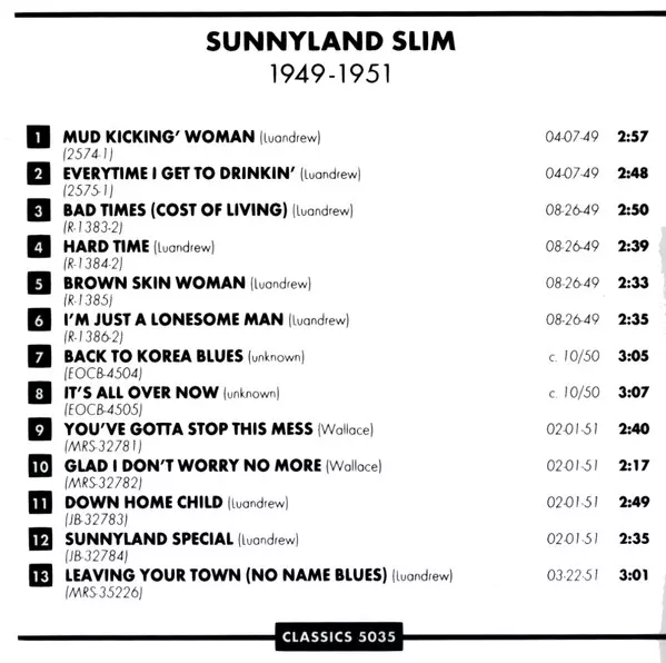 Sunnyland Slim, born Albert Luandrew on September 5, 1907, was a renowned blues pianist and singer who made a significant impact on the Chicago blues scene. He began his musical career in the Mississippi Delta before moving to Memphis and then to Chicago in the 1940s. In Chicago, h...