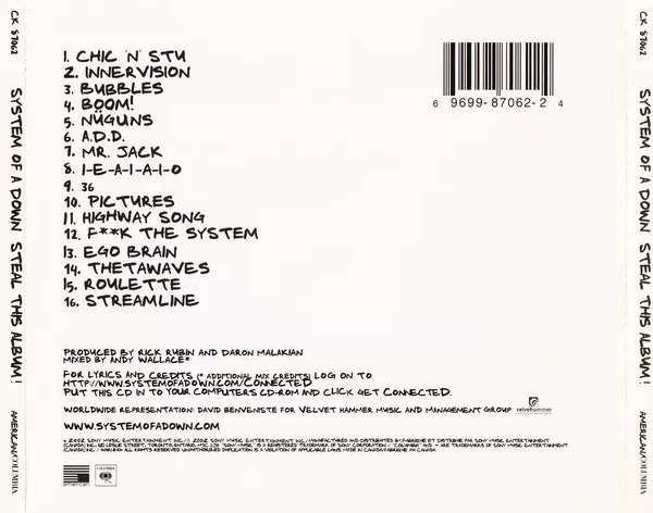 Album Steal This Album! od System of a Down je výbušnou směsí heavy metalu a punk rocku. Album je plné politických a společenských komentářů, stejně jako charakteristického zvuku těžkých kytar a dunivých bicích. Album vyšlo v roce 2002 a bylo třetím studiovým albem kapely. Produkoval ho Rick Rubin a bylo nahráno v domácím studiu kapely. Album bylo úspěšné u kritiky i komerčně a bylo nominováno na cenu Grammy za nejlepší hardrockový výkon. První singl z alba, "Chop Suey!", se stal obrovským hitem a pomohl albu dostat se na vrchol hitparád. Album si musí poslechnout všichni fanoušci heavy metalu a punk rocku a je ukázkou neuvěřitelného hudebního talentu kapely.