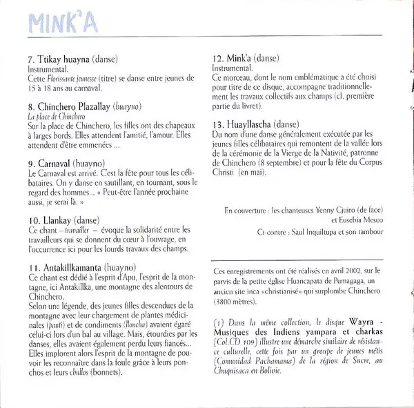 | Tytuł | Mink'a (Chants De La Terre Et De La Jeunesse) |