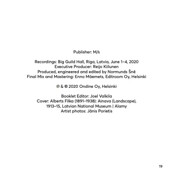 Wykonawca | Latvian National Symphony Orchestra | Andris Poga | Guntis Kuzma | Tālivaldis Ķeniņš | Agnese Egliņa |
