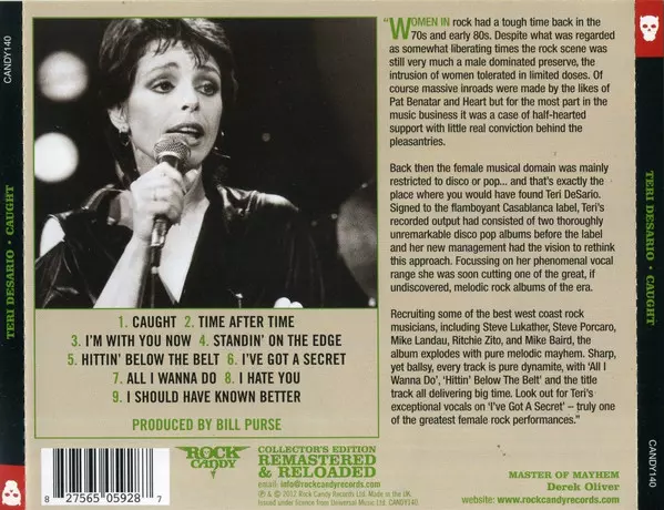 Teri Desario: Caught LTD Wersja na CD w ograniczone zremasterowane wydanie. Ta konkretna edycja została wydana w WIELKA BRYTANIA w wydawnictwie Rock Candy dnia 8. listopada 2024. Album sięga do gatunku Rock, Pop, Ballada, Pop Rock i AOR.