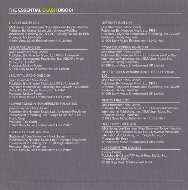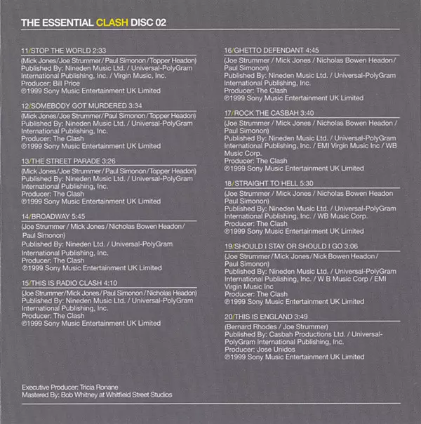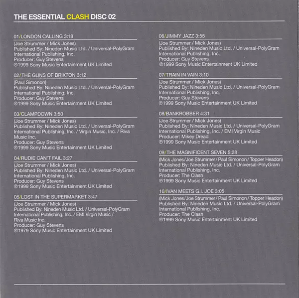 The Clash: The Essential Clash Wersja na 2CD w standardowe wydanie. Ta konkretna edycja została wydana w Europa w wydawnictwie Columbia we współpracy z Legacy i Sony Music dnia 5. października 2010.