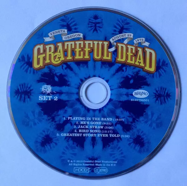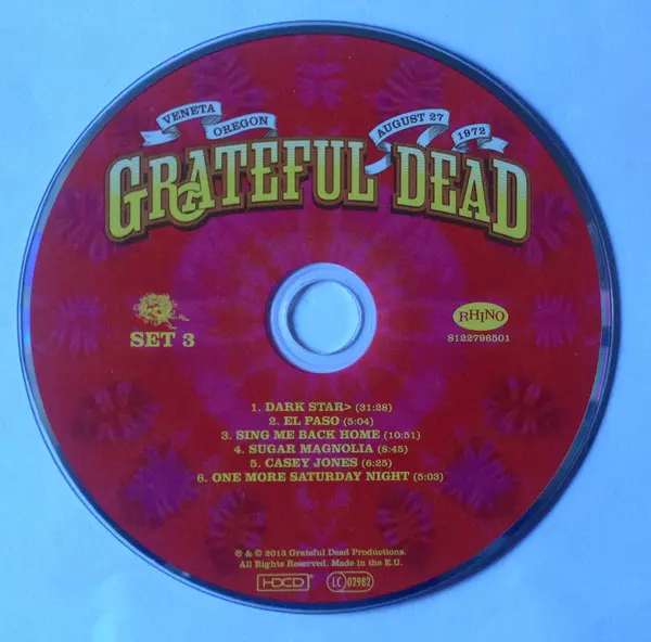 The Grateful Dead: Sunshine Daydream (Veneta, Oregon, August 27, 1972) Wersja na 3CD/DVD w standardowe wydanie. Ta konkretna edycja została wydana w Europa w wydawnictwie Rhino Records (2) dnia 7. października 2013.